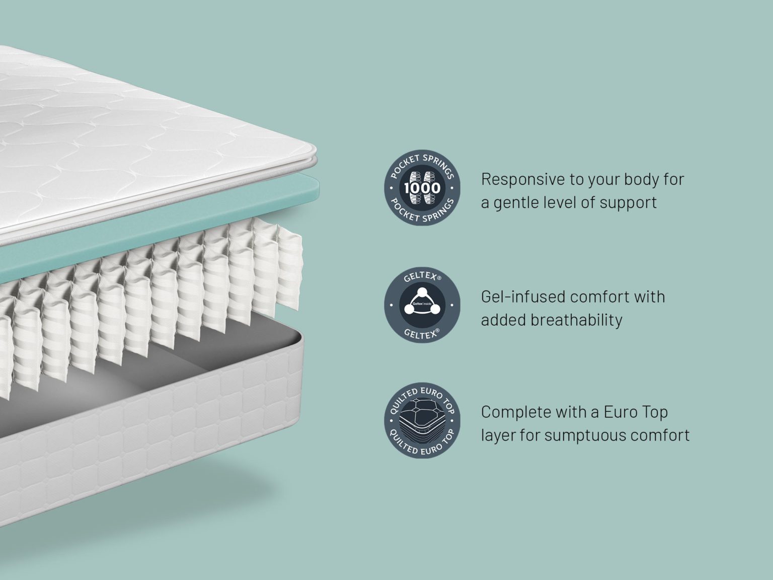 <div class="short-desc"> <ul> <li>1000 Pocket sprung</li> <li>Gel-Infused comfort layer</li> <li>Plush Pillow Top</li> </ul> </div><!-- split --><p>The Augusta mattress by Sealy sits at the top of the Enhance Collection and features a Gel-infused comfort layer, topped with a plush pillow Top for </p><p>a luxurious night’s sleep. </p><p>Pocket springs offer a gentle level of support and work independently to respond to your body shape and create a personalised feel. The springs </p><p>are sewn together in their own pockets to reduce movement and provide a refreshing night’s sleep. Combined with our deepest layer of Geltex, </p><p>which offers pressure relief to the areas of your body that need it most. Geltex is reactive to both shape and movement and offers breathability in </p><p>abundance, allowing air to circulate through the mattress easily and regulating your temperature as you sleep. Finished with a deep pillow Top, the </p><p>mattress boasts a softer feel that does not diminish over time. The hand selected fabric completes the mattress with style, holding the technology </p><p>firmly in place and creating a sumptuous look and feel. </p><p>All Sealy mattresses are hand-crafted in Britain and come with a 5 year guarantee for extra peace of mind. </p><p>Please Note: Firmness ratings are subjective and dependant on the users weight. But should you wish to try in store just pop in and we can show you all of the collection of beds and mattress we have on display at Paul Antony. </p><p>Unless otherwise stated all headboards, pillows and bedding sold separately. </p>